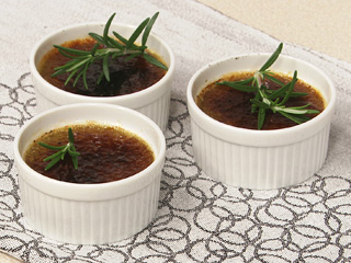 ▲蒸し上がったクレームブリュレ。冷蔵庫で冷やしておき、食べるときに仕上げる。