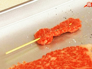 (2)竹串で縫うように刺す。