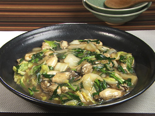 白菜がしんなりするまで煮てからかきをもどして仕上げます。