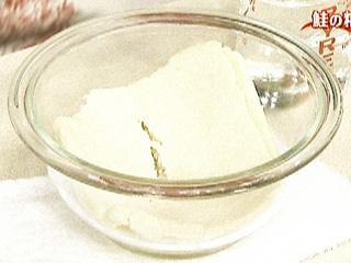 最初に酒粕を湯につけてやわらかくしておくとよい。