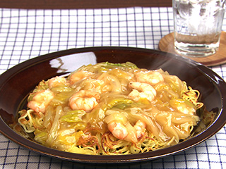 麺はほぐしながらフライパンに入れ、ターナーなどで押さえながらカリっと焼き色がつくまで焼きます。