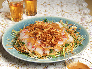 鯛の刺身サラダ 松の実じょうゆ