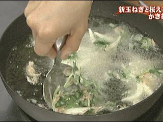 (3)入れてすぐ箸などで返したりしないで!固まってくるまで待つこと。バラけてしまった具は上にのせる。