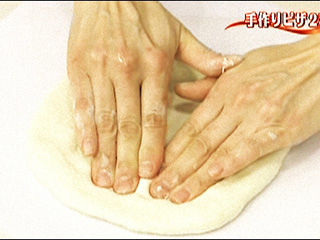 のばした生地は中心から外側に縁を立ち上げるように土手を作る。