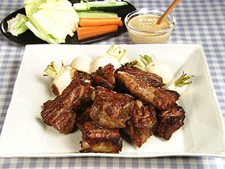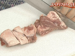 スペアリブに味がしみ込みやすいように、庖丁で2箇所ほど切り込みを入れておく。こうすると、食べ易く!