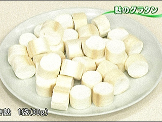 小麦粉からとったグルテンに小麦粉や水を加えてこね、棒状に成形して焼いたもの。良質のたんぱく質が多く、消化吸収が大変よい。 もどし方 一般的には水でもどしてから水気を絞って使うが、「麩のグラタン」にはソースを充分に吸わせたいのでそのまま使う。