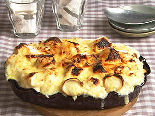 小麦粉からとったグルテンに小麦粉や水を加えてこね、棒状に成形して焼いたもの。良質のたんぱく質が多く、消化吸収が大変よい。 もどし方 一般的には水でもどしてから水気を絞って使うが、「麩のグラタン」にはソースを充分に吸わせたいのでそのまま使う。