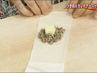 ひき肉と玉ねぎはしんなりするまでよく炒め、卵がつなぎ役です(手早く混ぜること)。