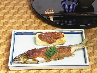 鮎と豆腐の木の芽みそ焼き