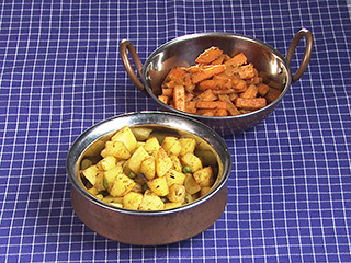 じゃが芋とグリンピースのサブジ にんじんのドライサブジ