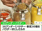 セリ科の一年草の種子で、さわやかな風味があり、消化を促進する効果がある。肉の臭み消しや、煮込みのとろみづけに使う。独特の香りのある葉は、中国料理では香菜、タイ料理ではパクチーとしておなじみ。
