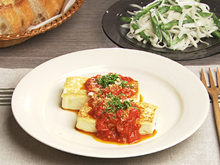 トマトは完熟のものを使います(青い場合は窓辺において追熟させるとよい)。