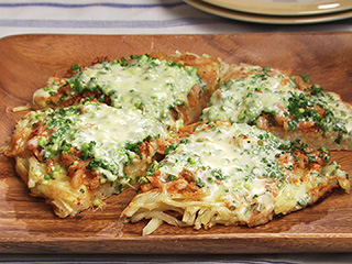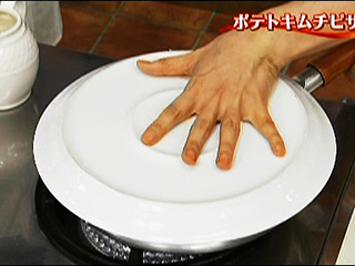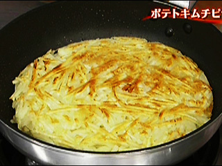 (1)油を敷いたところに、じゃが芋を広げ、ターナーで押しつけるようにして焼く。