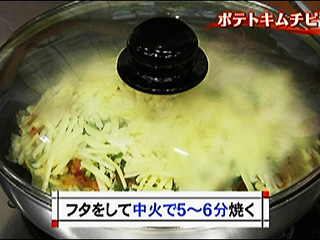 (2)ふたをして、芋が透き通るまで焼く(7~8分)。