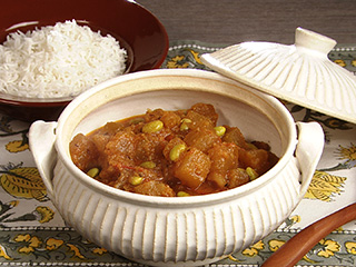 インディカ米はパスタをゆでるような大きな鍋を使ってゆでます。