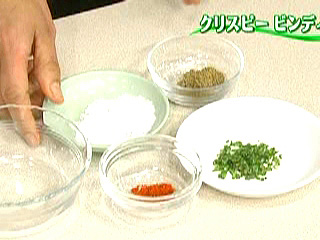 衣(ベーサンと米粉)は揚げる直前にまぶします。