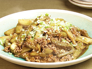 なすは蒸し炒めをしてやわらかくなるまで火を通します(4~5分かかる)。