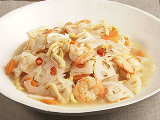 えびは最後に合わせるので、完全に火を通しておくこと(背が白くなればOK)。