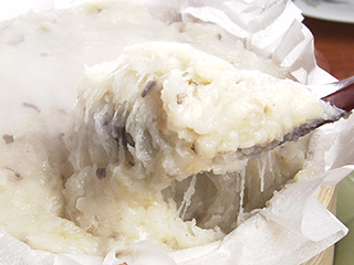 冷めたものを薄くカットして油で焼くのが一般的ですが、蒸したての熱々トロトロをいただくのはウイニー先生流です。