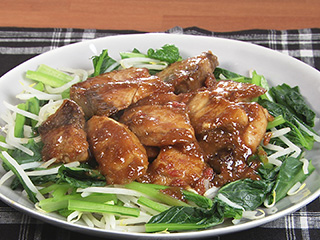 この梅オイスターソース、野菜にもよく合うのでいっしょにからめていただきましょう。
