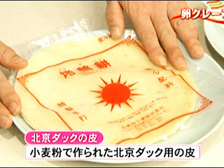 北京ダックの皮は「カオヤーピン」と呼ばれる、北京ダック用の小麦粉で作られた薄い皮。