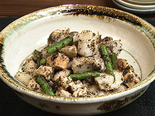 鶏肉と蒸し里芋のごまみそあえ