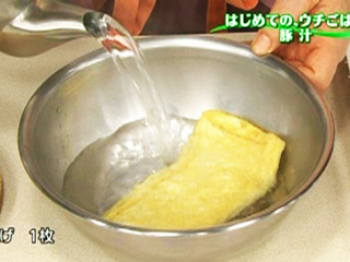だし汁は使わず、豚肉と油揚げから十分‘だし’が出ます(水でOK)。