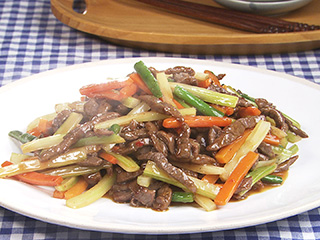 野菜はすべて切り揃えるのがおいしさのカギ、5cm長さ×5mm角を心がけましょう。