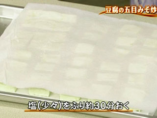 豆腐は塩をして水きりをすると、下味もついて水きり時間も短縮されます。