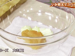 明太子に混ぜるのはバターのほかにマヨネーズとレモン汁。マヨネーズを加えるとパスタとのからみが良くなり、しっとりとした食感に。またレモン汁はさっぱりとした味に仕上げてくれる。