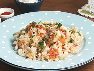 トマトの酸味で夏によく合うピラフに仕上がります。