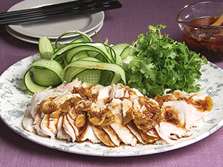 四川料理の名菜「口水鶏(コウシェイヂィ)」。よだれが出るほど美味しいのがその名の由来だそうです。