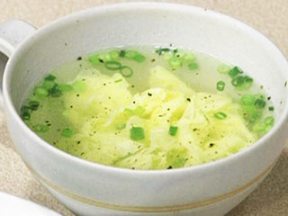 鶏肉の煮汁は美味しいので捨てないで!溶き卵を流しいれ、こしょうで味を調えてスープに。副菜にどうぞ。