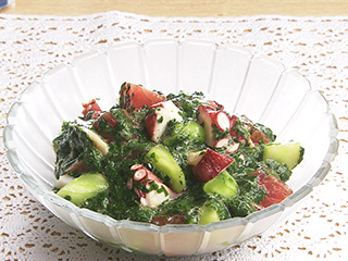 たことまぐろのモロヘイヤあえ