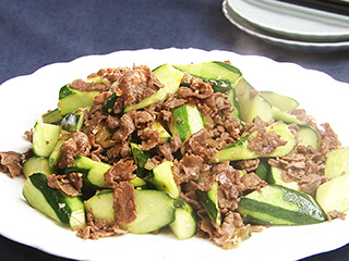 牛肉はひき肉ではなく切り落としを使いますが、きゅうりとのなじみが良い様にやや細かく切りましょう。