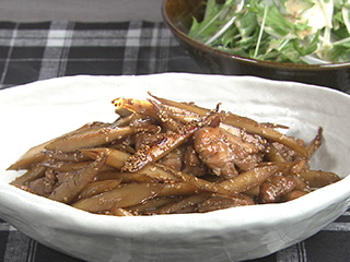 ごぼうは香りを活かしたいので、皮はむかずにタワシできれいに洗います。