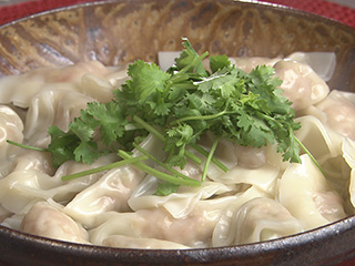 ゆで上がりは、器に盛って、皮同士がくっつかないようにゆで汁も少々かけるとよい。