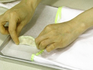(2)皮の端にぐるりと水をつける。