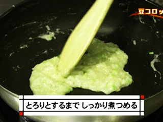 炒めた長ねぎと小麦粉をだし汁でのばして、のり状になるまで煮詰めておく。 しっかりのり状にすることでまとめ易くなる。