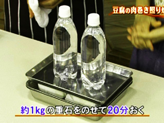 豆腐の瑞々しさとやわらか食感を残すように、水きりは1kg程度で短時間でOK。