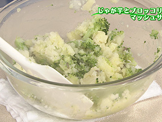 作り方 (1)じゃが芋は皮をむいて一口大に切る。ブロッコリーは小房に分け、茎は厚めに皮をむいて1cm幅に切る。 (2)鍋に(1)のじゃが芋とかぶるくらいの水を入れて、強火にかける。煮立ったらふたをして、竹串がスッと通るまで弱火で6分ほどゆでる。 (3)ふたをとって強火にし、(1)のブロッコリーを加えて3分ほどゆで、ザルに上げる。 (4)ボウルに(3)を入れ、温かいうちにマッシャーなどで軽くつぶす。ケッパー、オリーブ油、塩を加えて混ぜる。