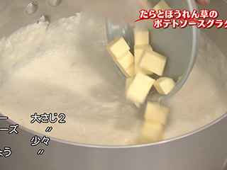 仕上げにバター、粉チーズ、塩、こしょうを加えて混ぜる。