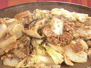 白菜の葉元は色づくまで時間をかけて炒めます(とろっとしたほうがおいしい)。