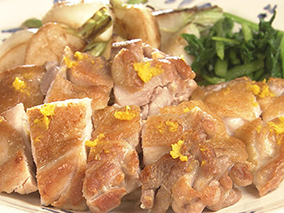 パリっとした皮をいただきたいので、焼き上がりは落ち着いてからカットし、柚子の汁は各自ふりかけて食べましょう。