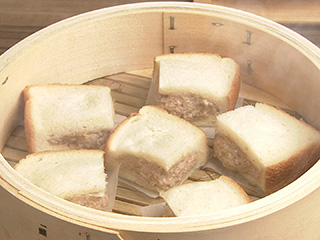 パンだけ蒸してもおいしい!肉まん同様食パンを4つ切りにし(切り込みは入れない)5分蒸す