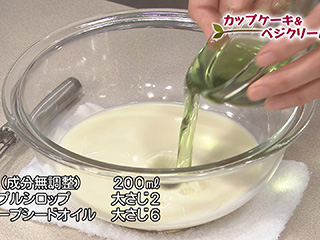 カップに移すところも、生地を側面からすくいとること(真ん中からすくったりしないで)。