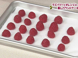 木いちご、フランボワーズとも呼ばれるフルーツ。国産のものは7~9月ころが旬で、輸入ものは通年出回る。今回は、生のものを使うが、手に入らないときは冷凍ものでもOK。生のものを自分で冷凍しておいてもよい。 下準備 へこんだところに水気がたまりやすいので、生のものは洗ったらペーパータオルを敷いたバットに並べて水気をきる。冷凍のものを解凍する場合も、同様にする。