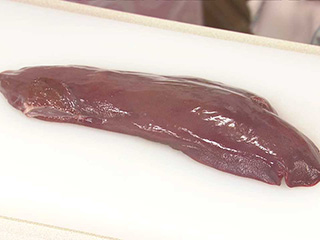 豚の肝臓。ビタミン類(A、B2、Dなど)や鉄分が豊富で栄養価が高く、貧血防止におすすめの食材。きちんと血抜きをし、下ごしらえをして特有の臭みを抜くと食べやすくなる。買い求めるときは、色ツヤが良くて傷がなく、鮮度の良いものを選ぶこと。