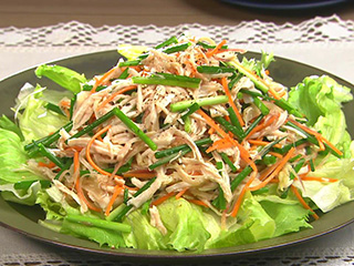冷めたら、繊維に沿って細かく裂き、蒸し汁をからめておく。