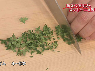 スペアリブのマリネがポイント、塩と砂糖をよくもみ込んでなじませてからタイムを加えます。